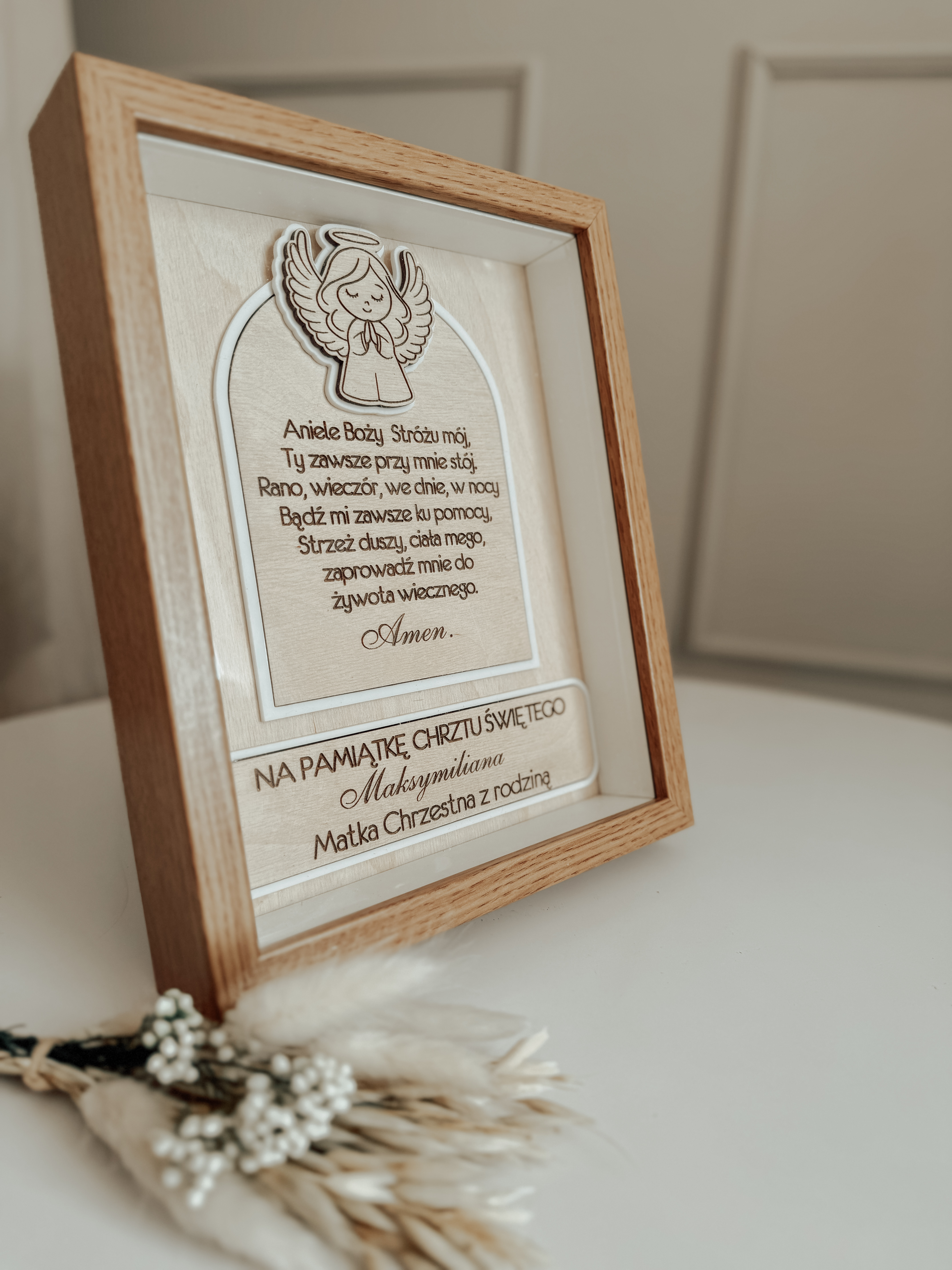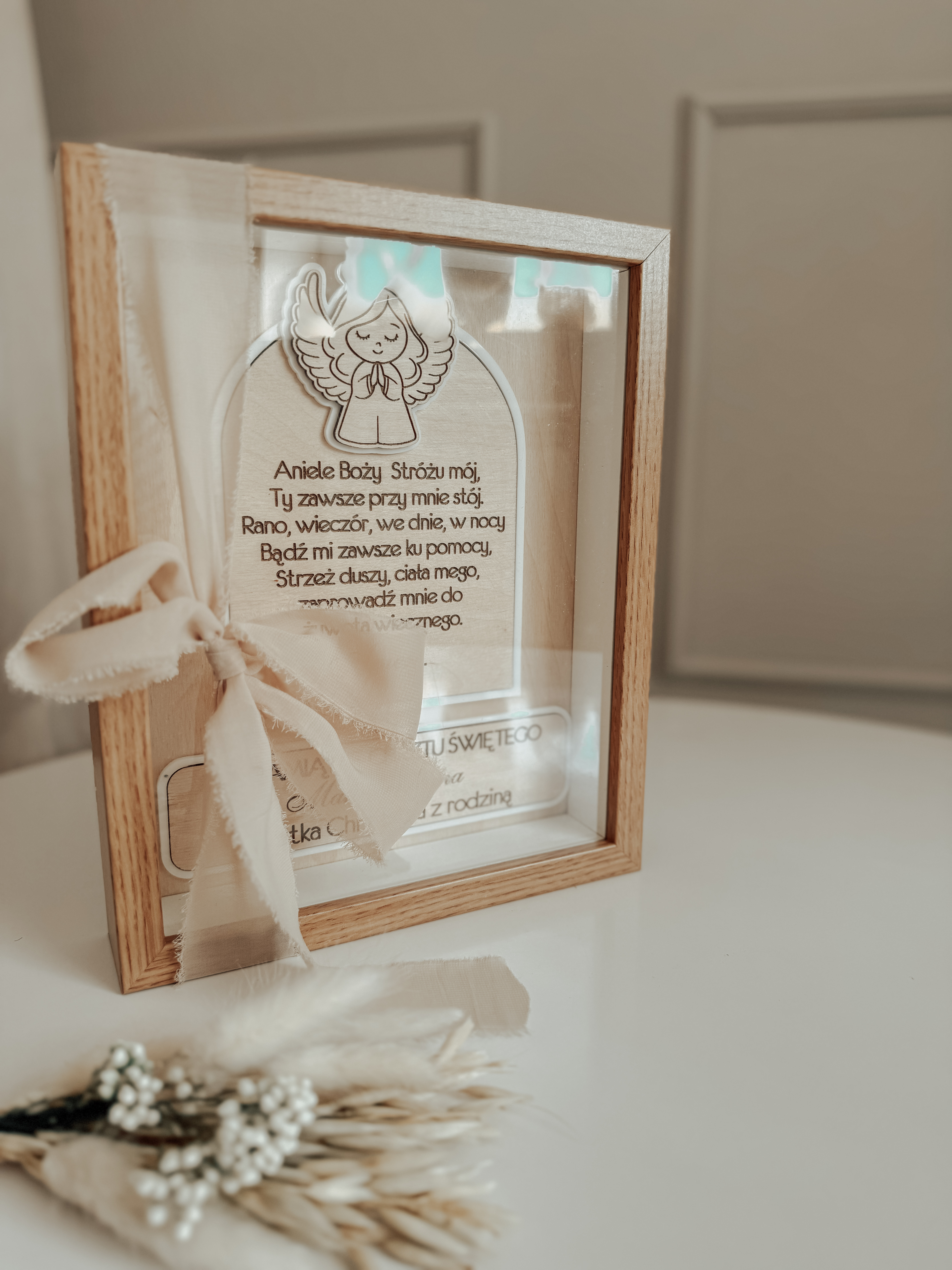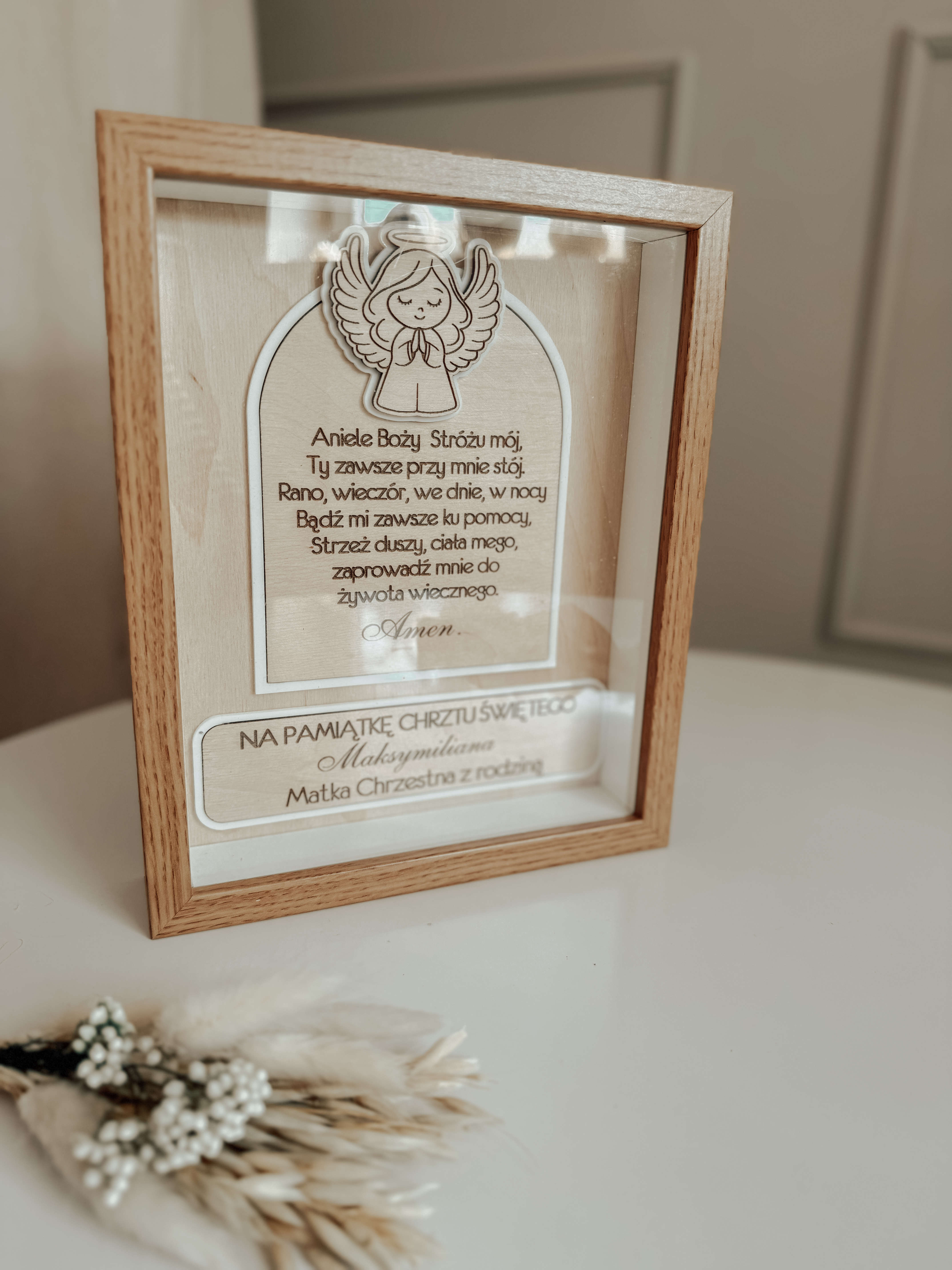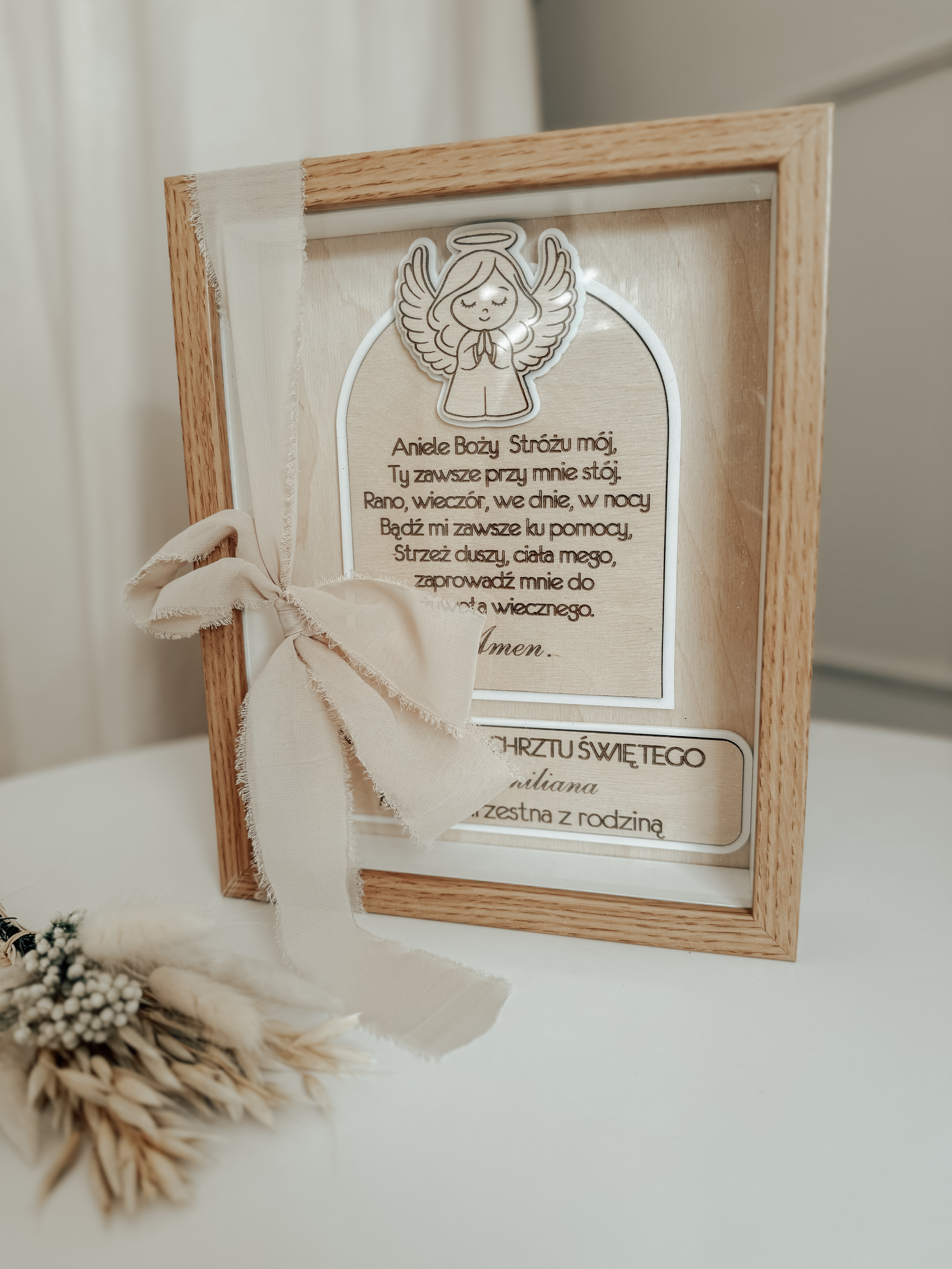 Personalizowana pamiątka Chrztu Świętego w eleganckiej ramce Wyjątkowa pamiątka Chrztu Świętego, wykonana z dbałością o każdy detal.![]()