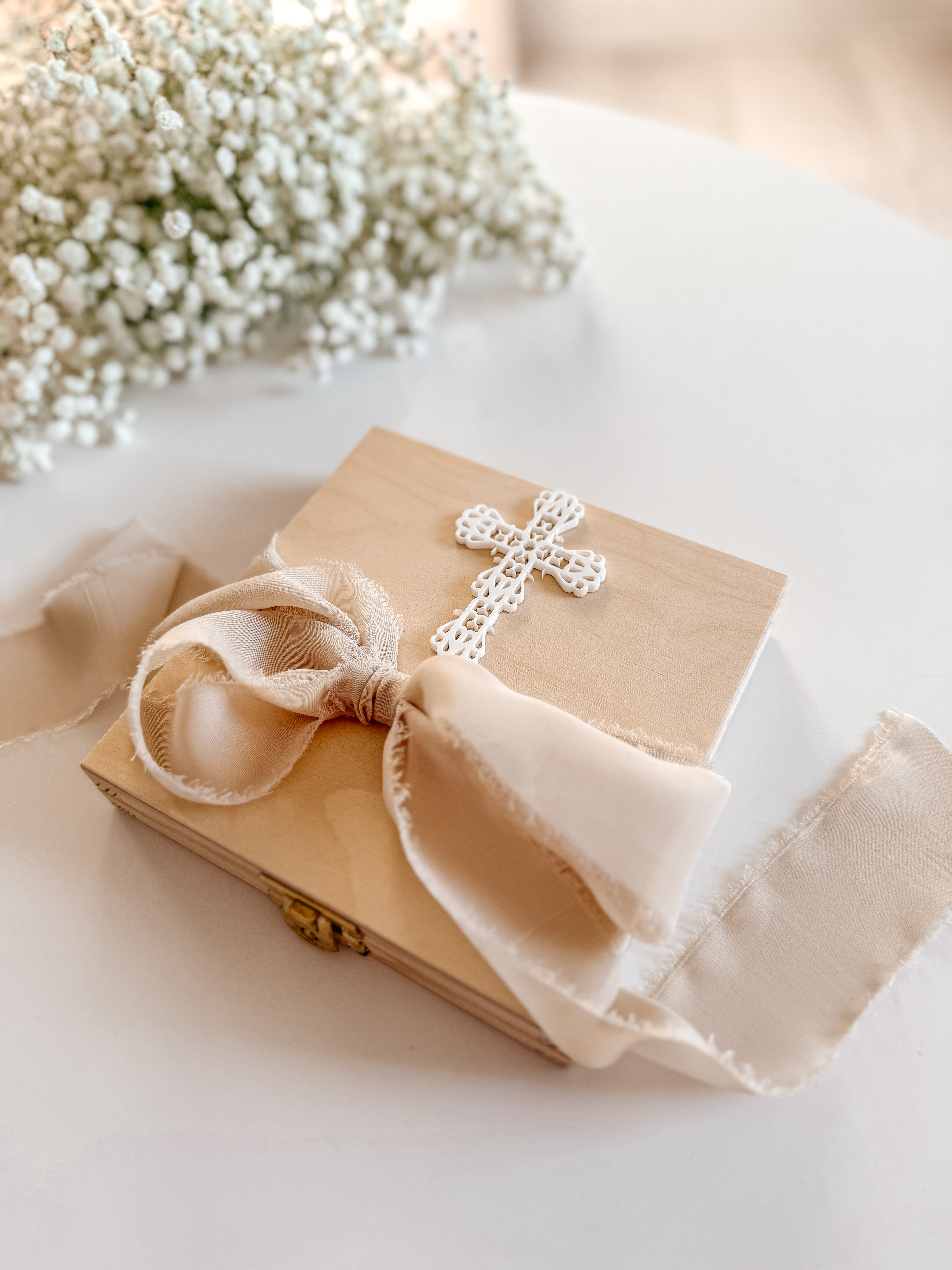 Pudełko kwadratowe na Komunię Św. Wzór 7 (Krzyż Biały)