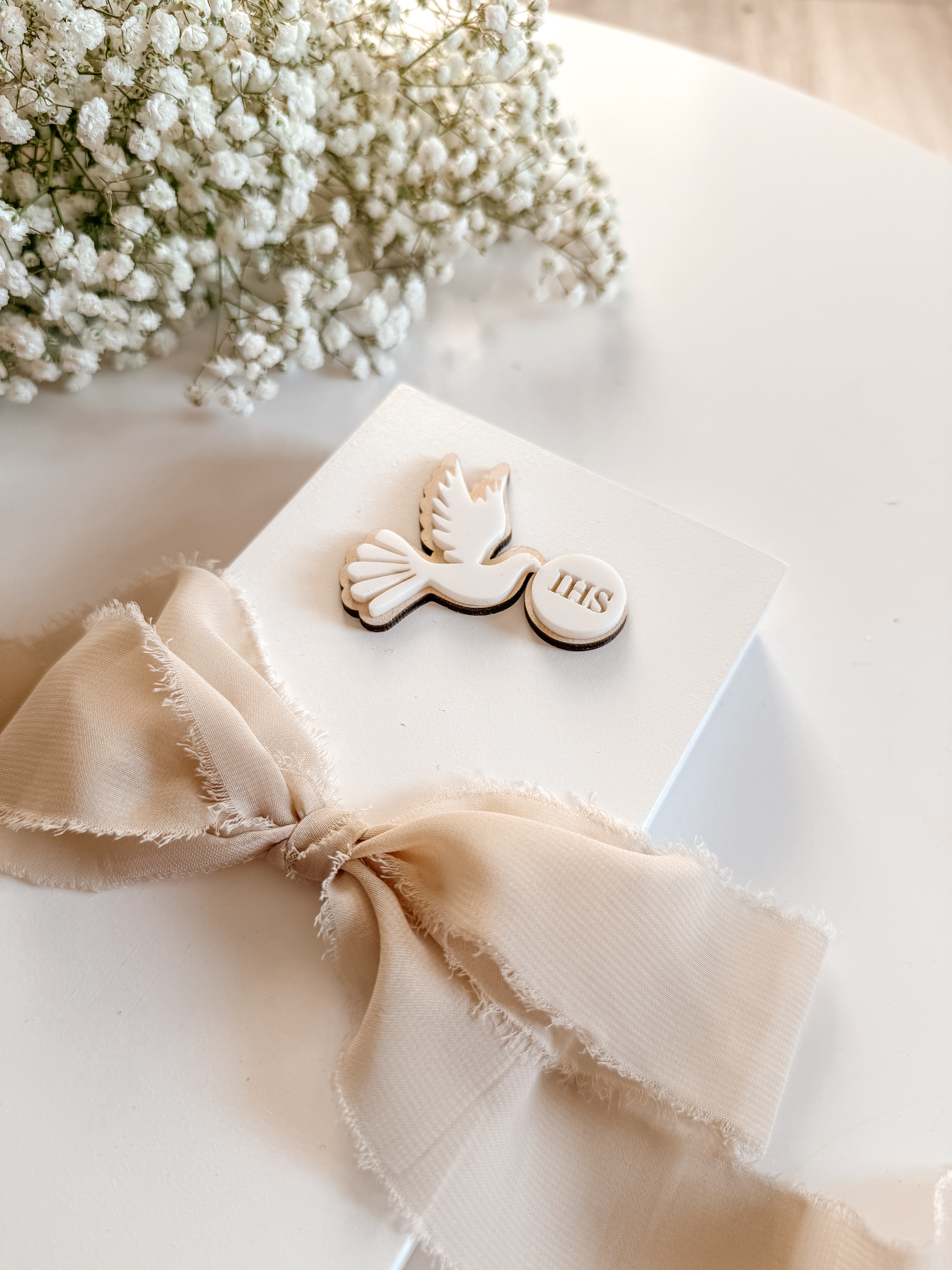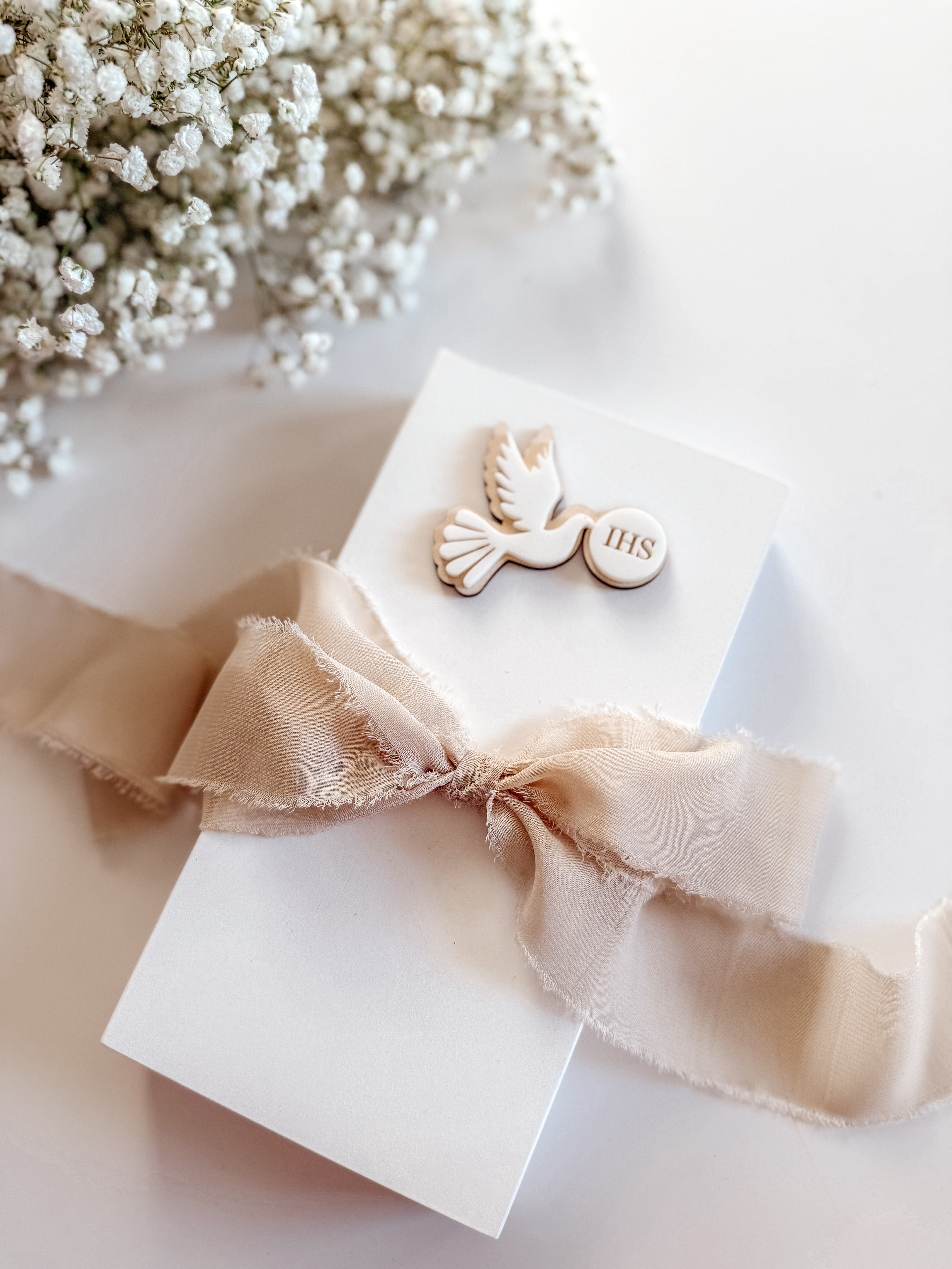 Pudełko prostokątne na Komunię Św. Wzór 4 (Gołąbek IHS BIały)