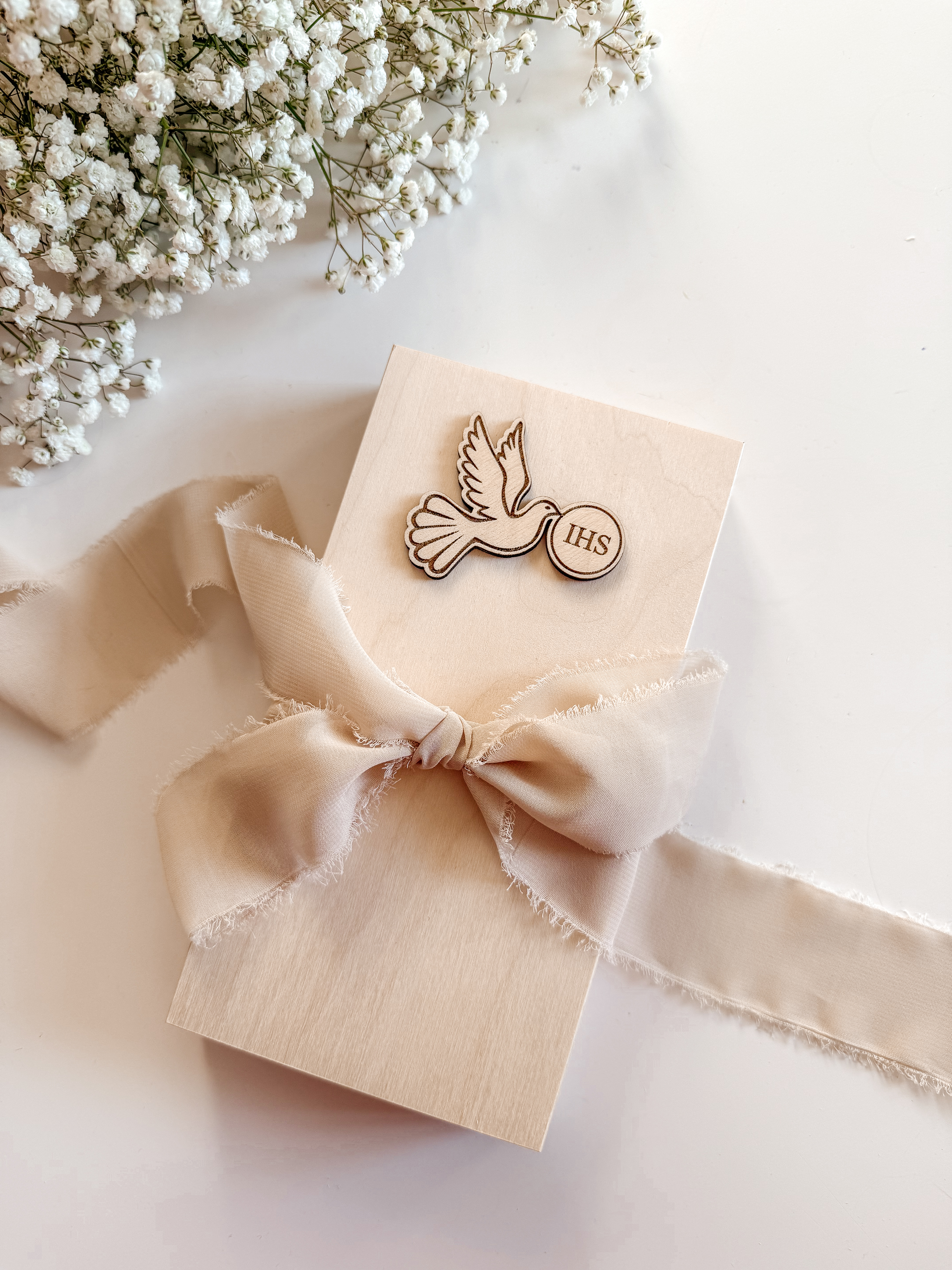 Pudełko prostokątne na Komunię Św. Wzór 5 (Gołąbek IHS)