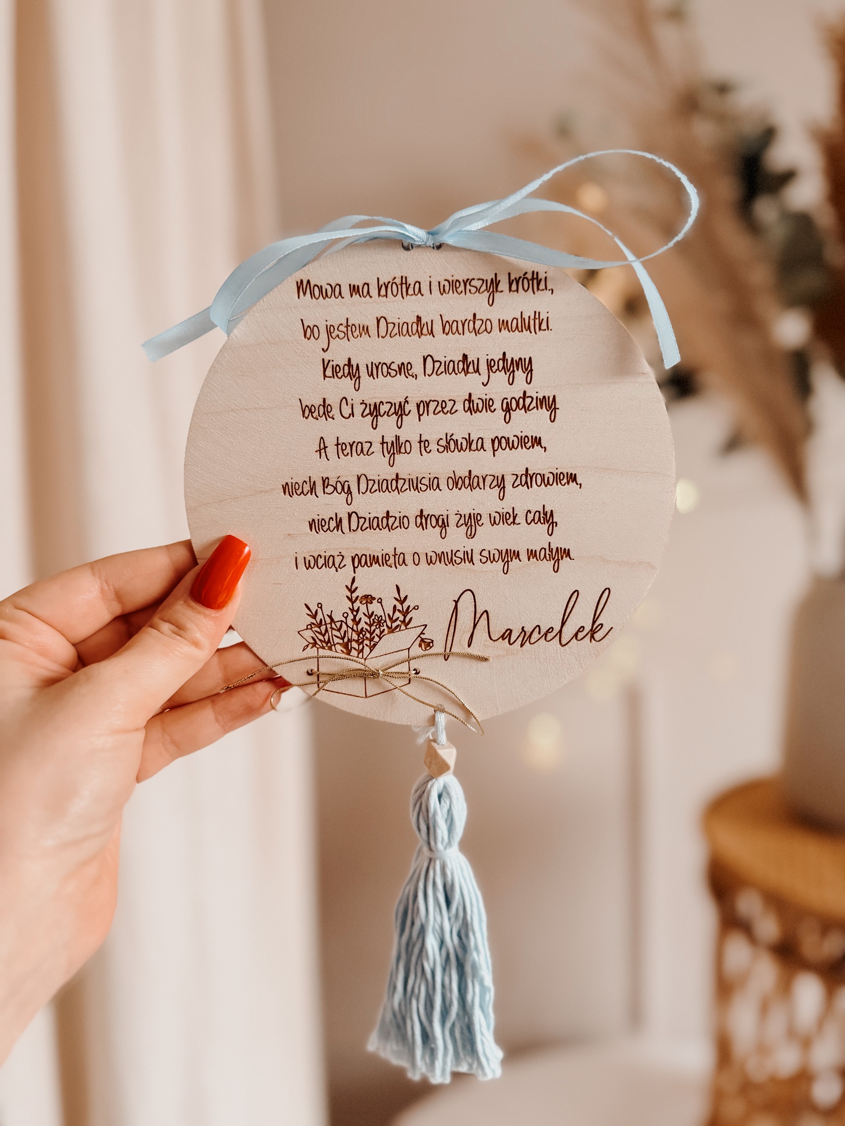 Personalizowana tabliczka na Dzień Dziadka, z wierszykiem oraz podpisem dziecka.