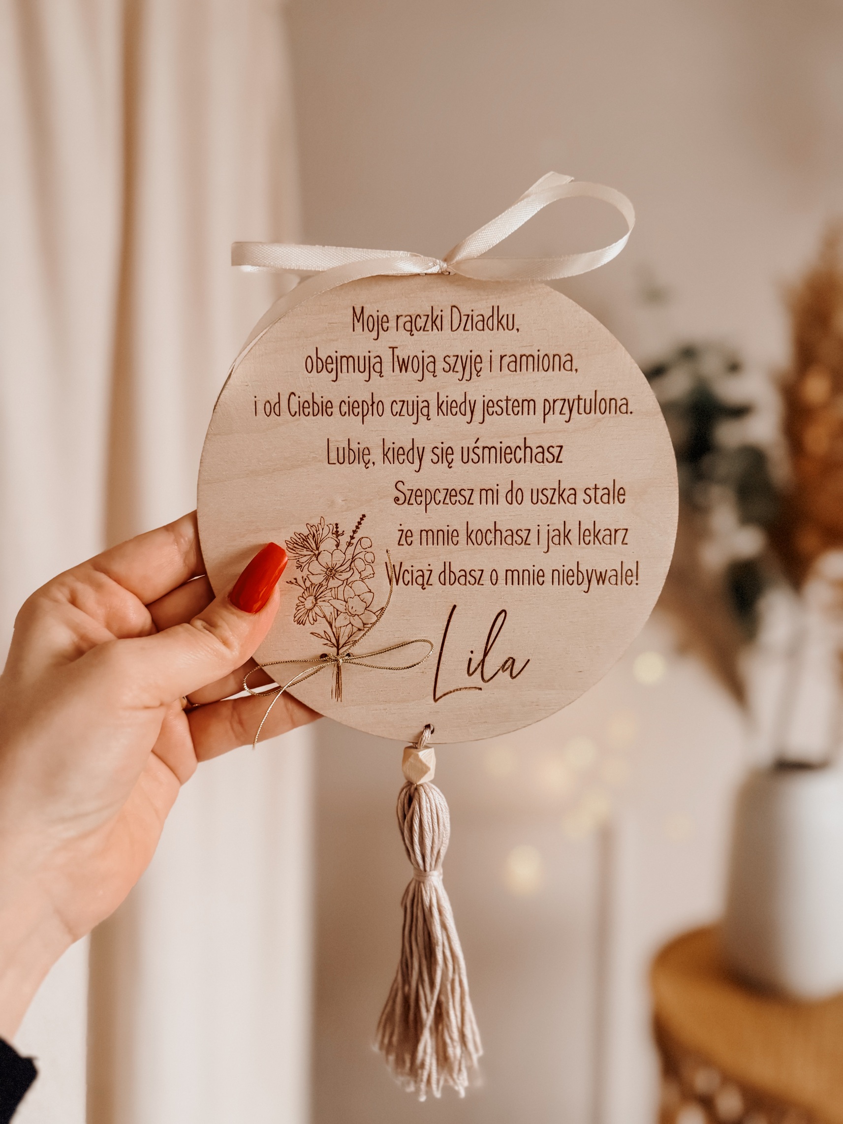 Personalizowana tabliczka na Dzień Babci i Dziadka, z wierszykiem  dopasowanym do wybranej osoby (Babcia, Dziadek, Prababcia, Pradziadek) oraz podpisem dziecka.