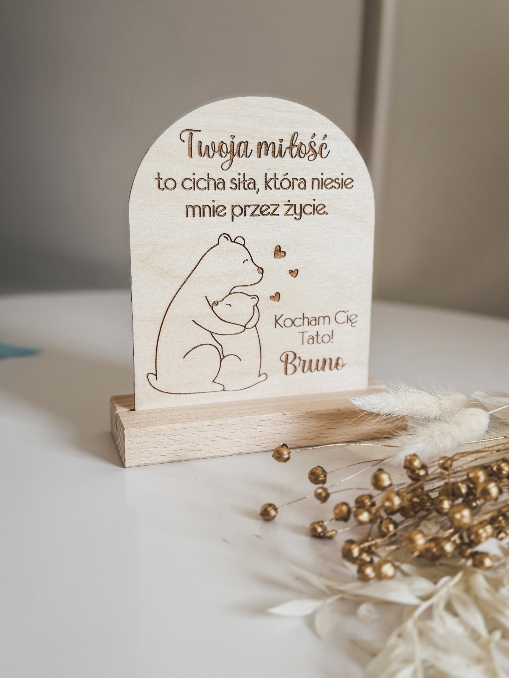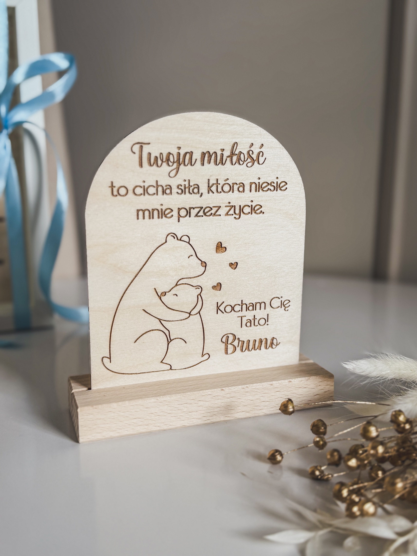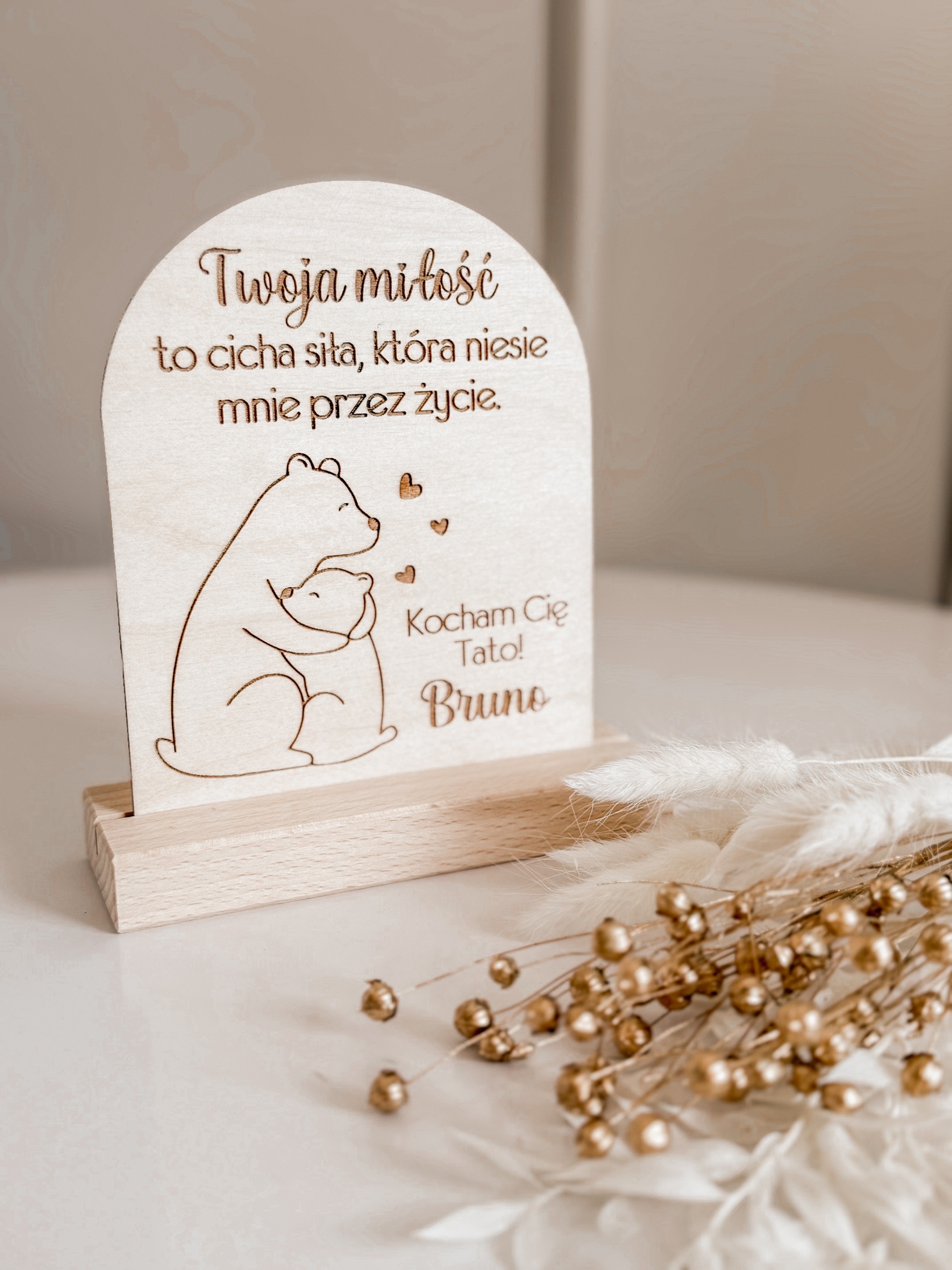 Szukasz wyjątkowego i wzruszającego prezentu dla Taty? Ta urocza, drewniana statuetka z grawerem to idealny sposób, by wyrazić miłość w imieniu małego dziecka .