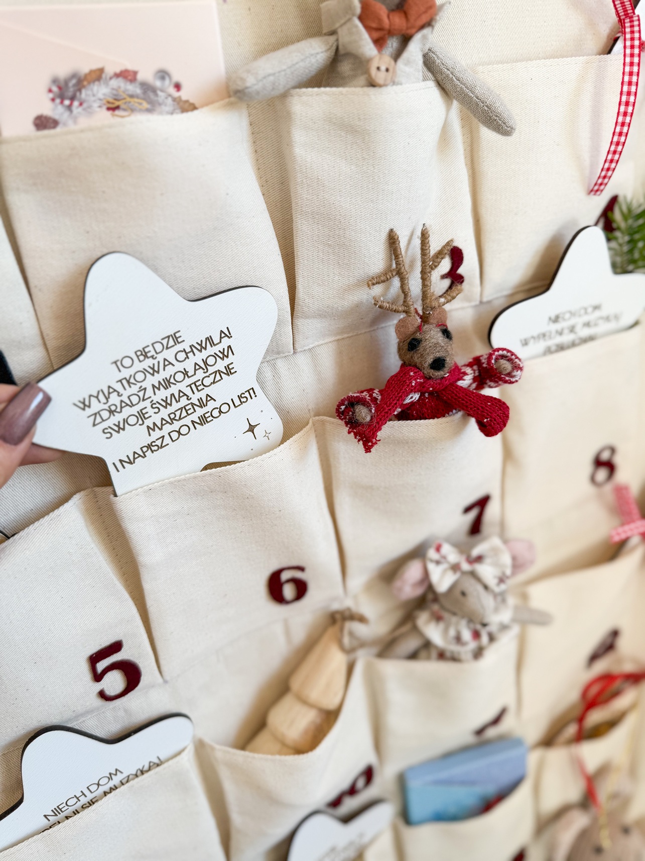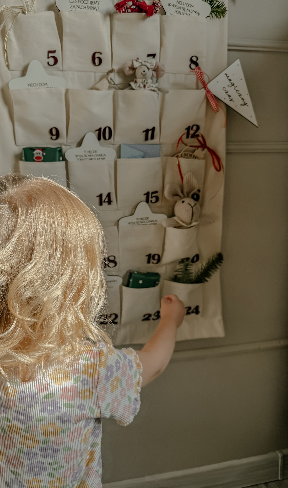 Ten kalendarz to nie tylko dekoracja – to cała świąteczna przygoda zamknięta w 24 kieszonkach.