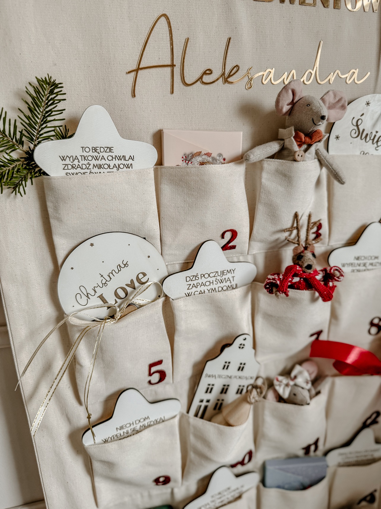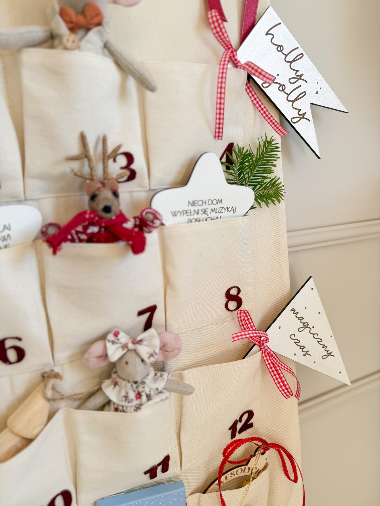 Tu każda kieszonka to mała skrzynia skarbów – na słodkości, zadania, liściki od Świętego Mikołaja czy mini prezenciki.