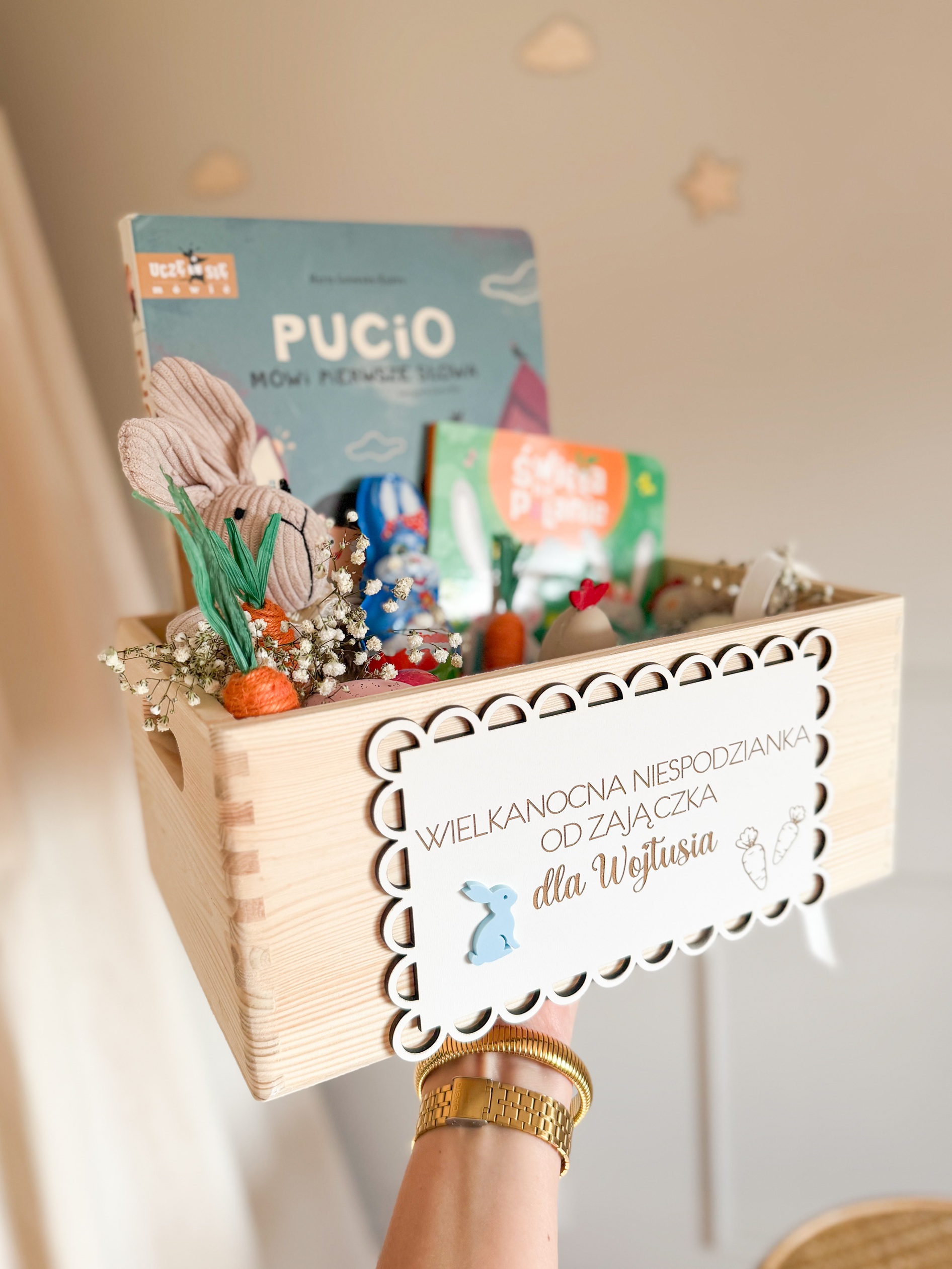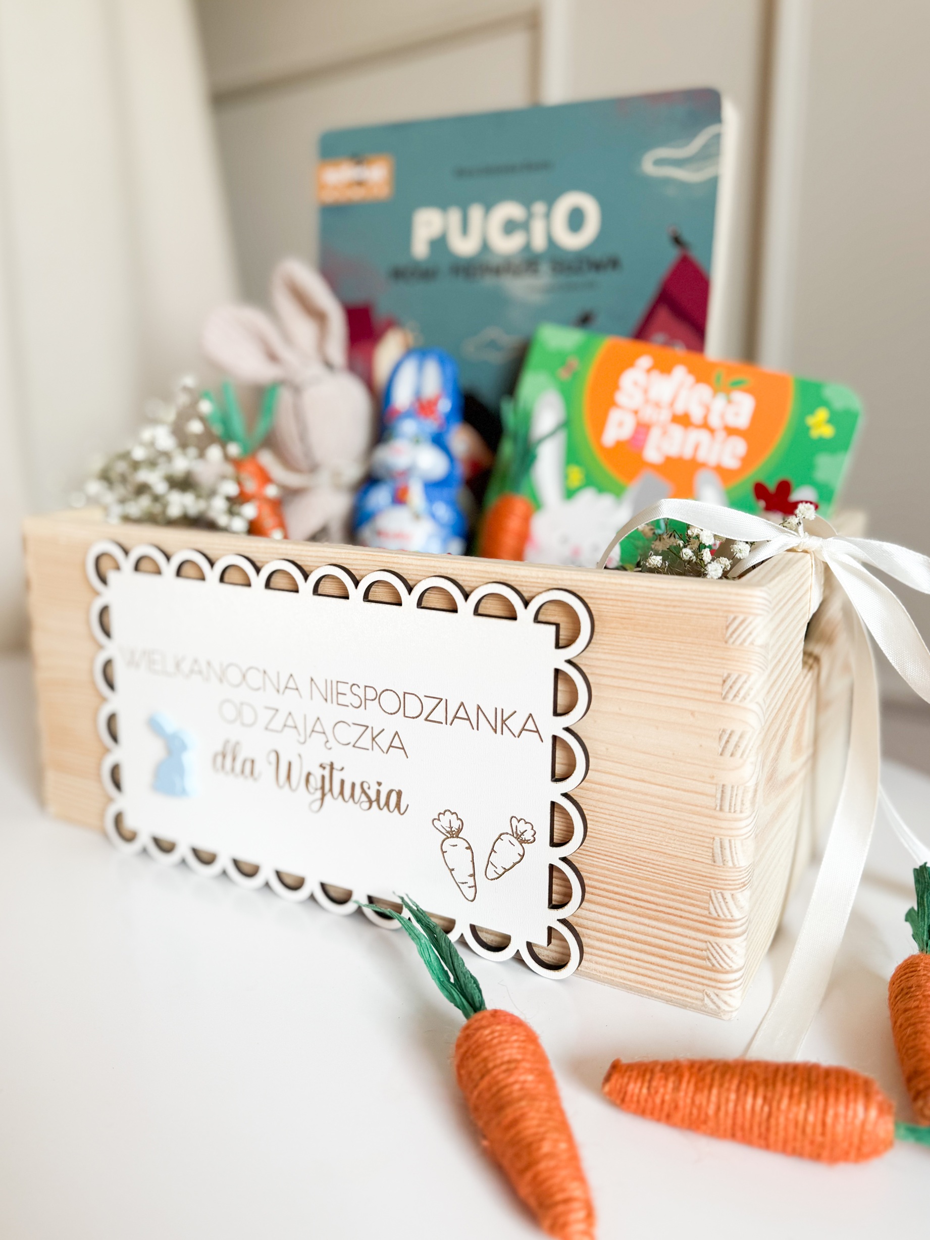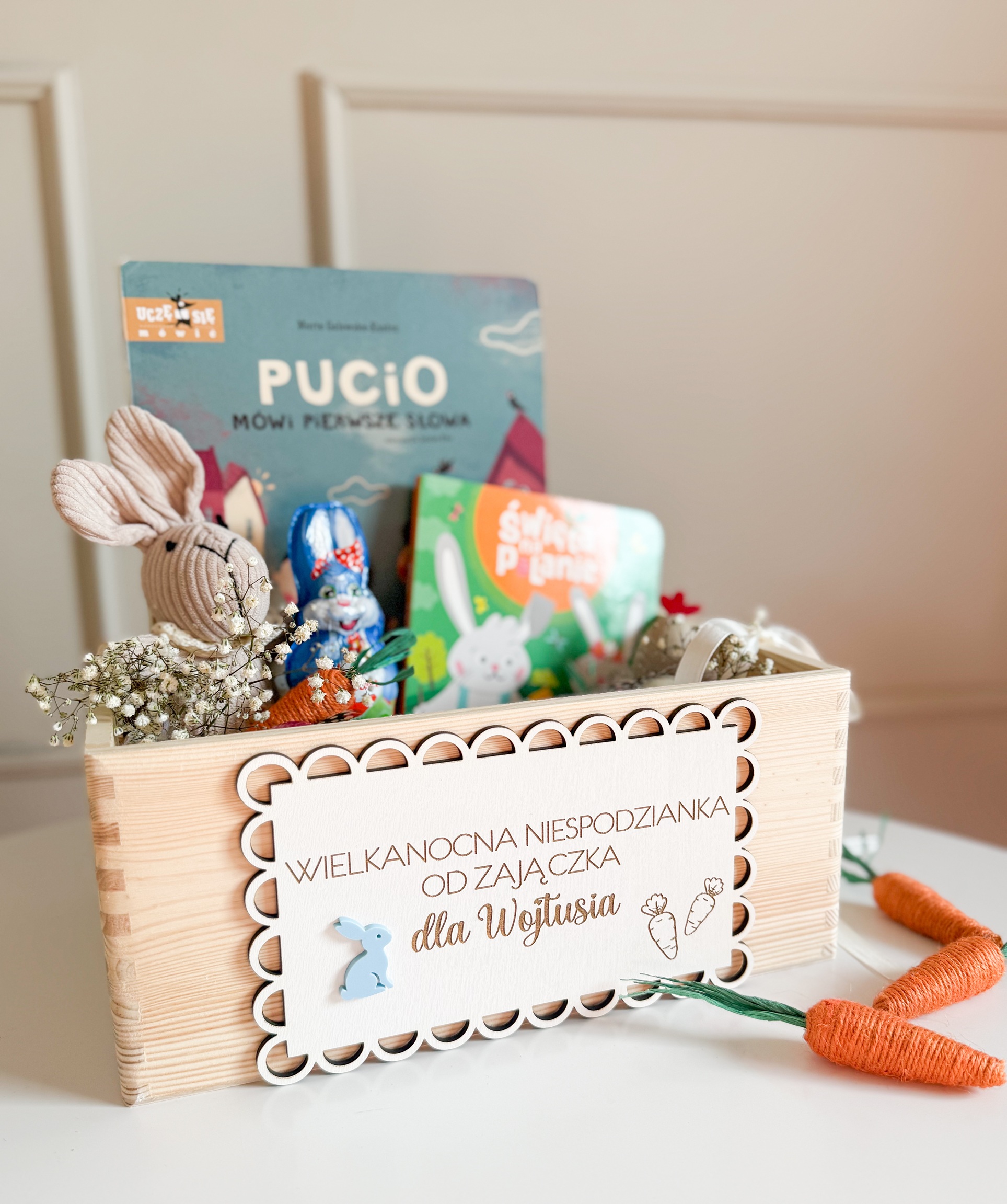 Drewniana skrzyneczka z personalizacją to idealny sposób na zaprezentowanie prezentów od Zajączka ✨ Solidne wykonanie, urocze detale i imię maluszka sprawiają, że rozpakowywanie staje się jeszcze większą frajdą 🥕💙 Pamiątka, która po świętach idealnie posłuży do przechowywania ulubionych książeczek i skarbów 📚🧸